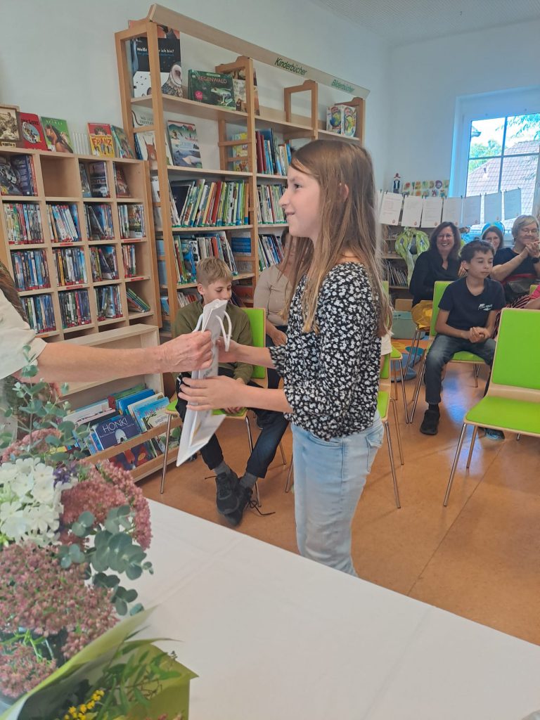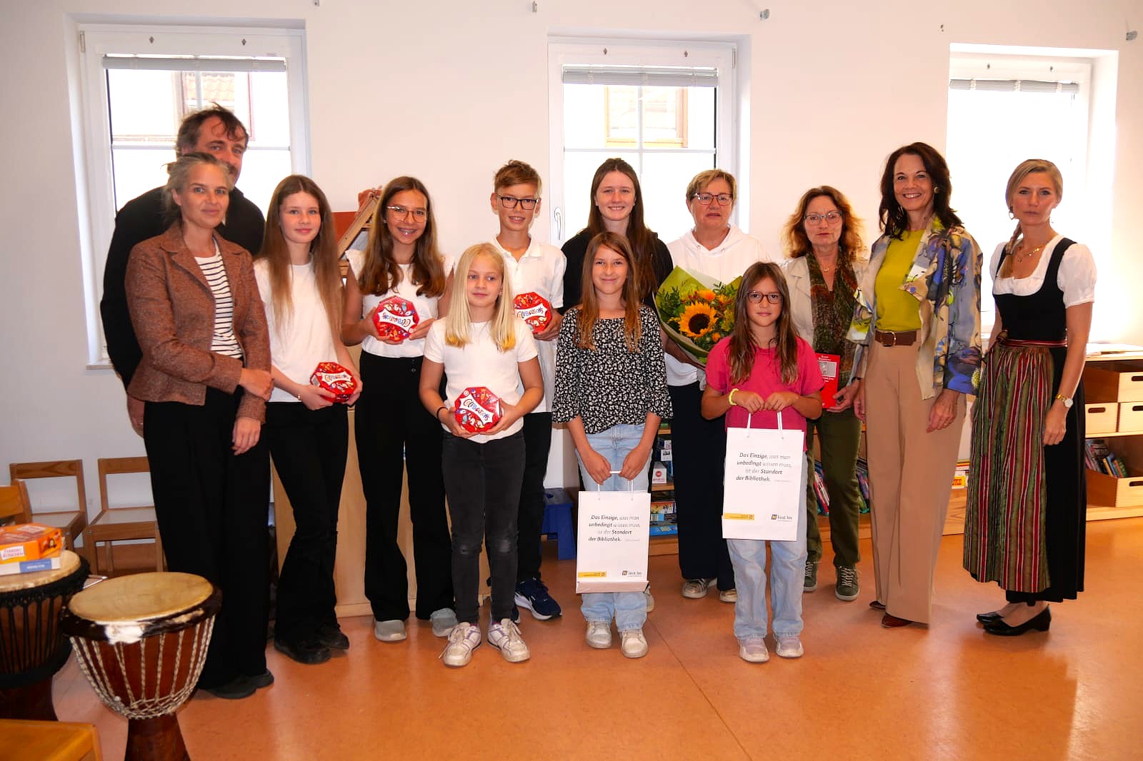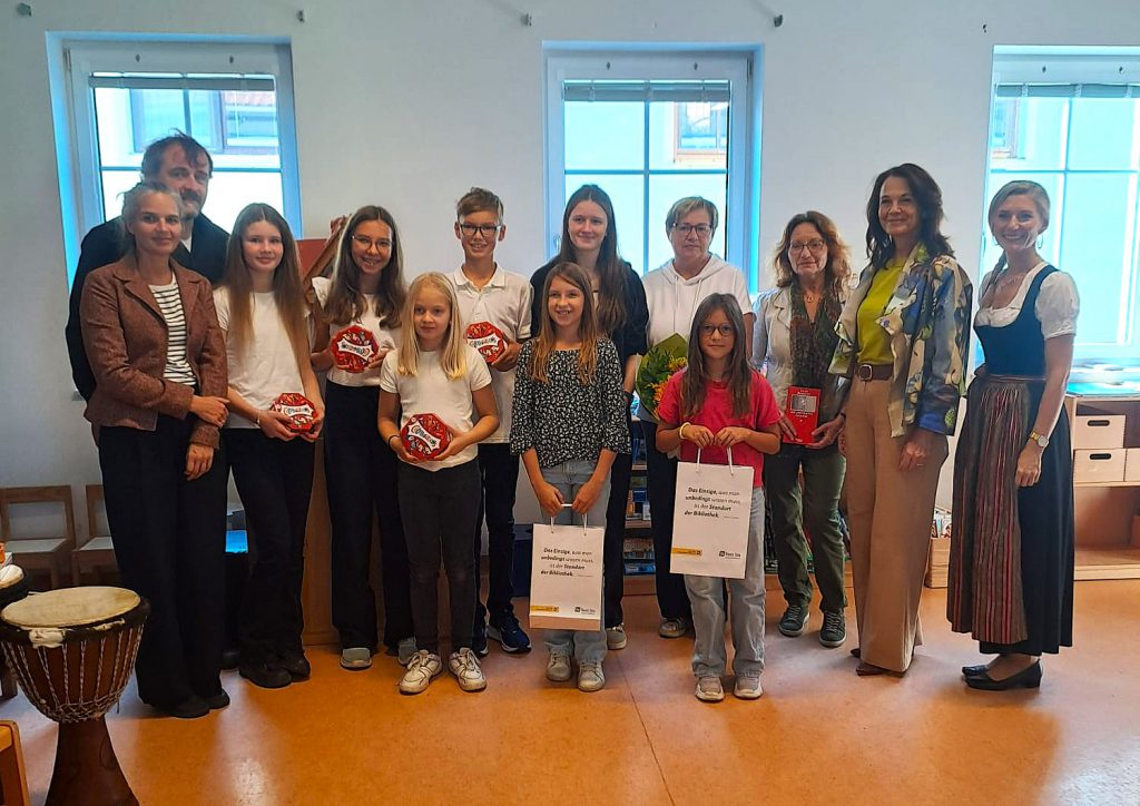 Das Jubiläumsfest bot ein abwechslungsreiches Programm, Mitmachstationen, ein Kamishibai Erzähltheater, Rätselstationen und eine Lesung von Monika Maier Zehetner aus „Die souveräne Leserin“ von Alan Bennett. Für das leibliche Wohl sorgten Kaffee, Kuchen und Brötchen, die musikalische Umrahmung gestalteten Helfried und Karin Apfelthaler mit ihren Kindern Magdalena, Mirijam und Johann sowie den jungen Schülern Emma Westermayer und Valentin Müller.