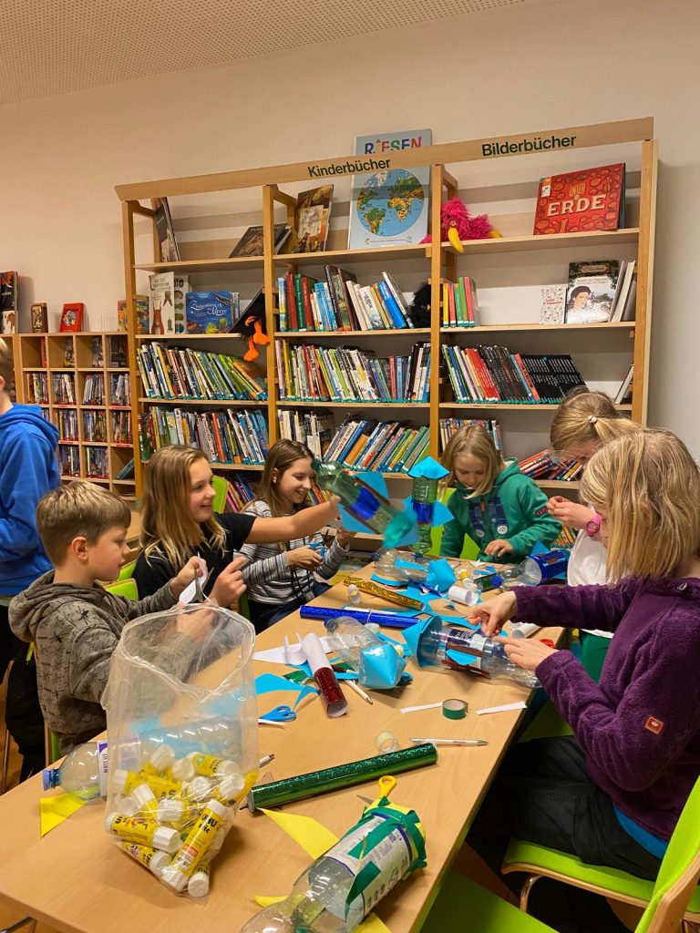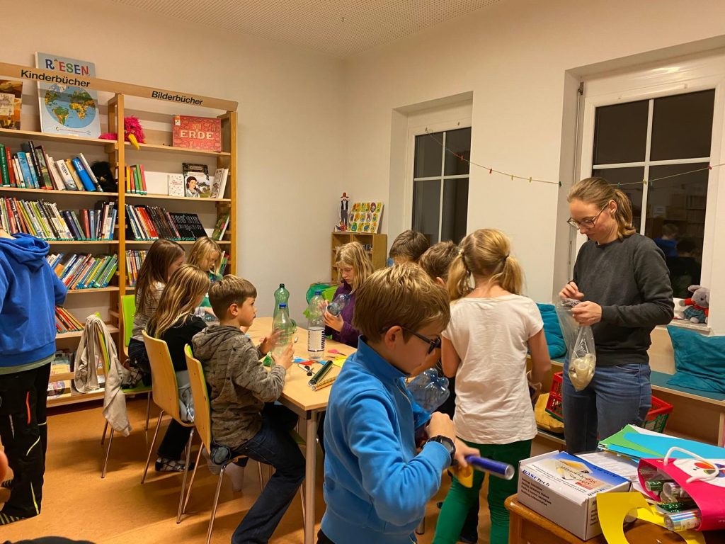 Gemeinsam erforschten wir, wie echte Raketen funktionieren und welche Wege es gibt, genügend Schubkraft zu erzeugen, um der Erdanziehungskraft zu entkommen. Schritt für Schritt bauten die Kinder anschließend verschiedene Raketenmodelle. Und natürlich kam das Highlight zum Schluss: der Raketenstart!