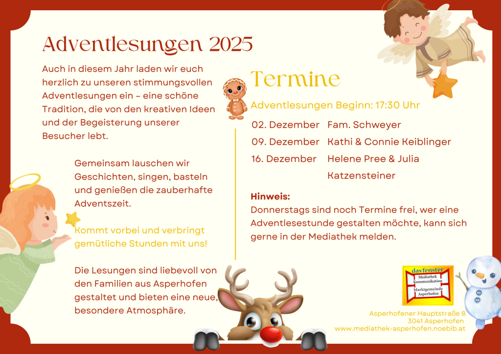 Gemeinsam lauschen wir Geschichten, singen, basteln und genießen die zauberhafte Adventszeit.